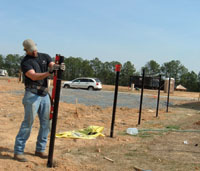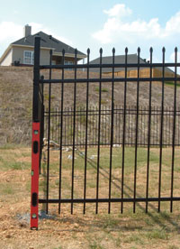 When laying out the fence, sketch your site plan on paper, including measurements, fence lines and notes for all post, corner and gate locations. The fence system featured in this article is the Montage Fence from Ameristar, which comes with pre-assembled panels. The 8-foot panels were designed to connect to the metal posts with special brackets, so no welding was required. On our site plan, we marked post locations following the property line every 96-3/4 inches (according to Ameristar's instructions). When the property limit didn't leave room for an entire 8-foot panel, we shortened the span between posts with the intent of cutting the panels to size when it came time to install.