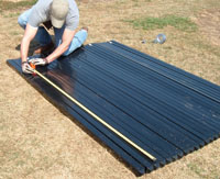Cut the odd-sized panels as needed. Tool Tip: We used a Milwaukee Sawzall with a metal-cutting blade to speed up the process. After cutting, drill new bolt holes for the panel brackets.